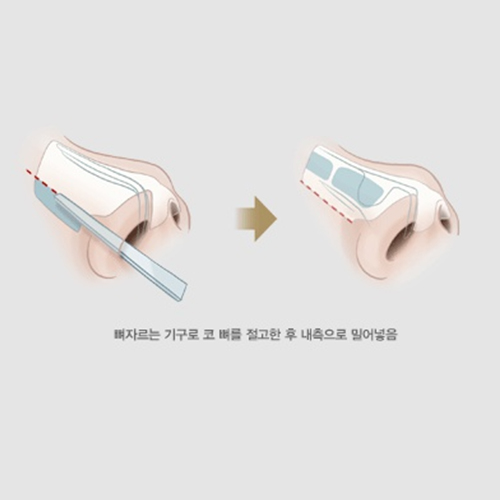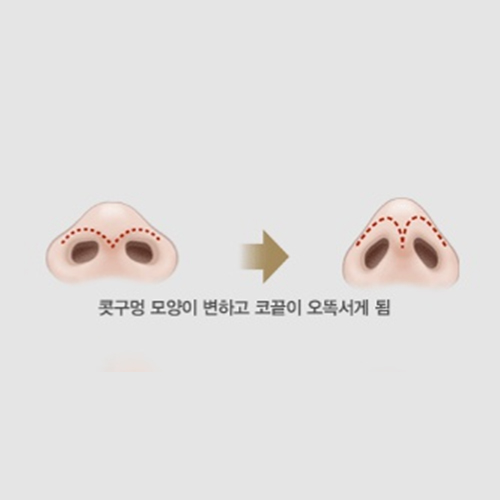 - 비주(콧구멍 사이의 기둥)중간에 자기 연골로 지지대를 만들어서 코 끝을 받쳐올린 상태로